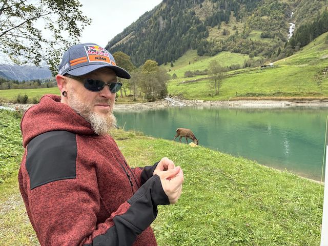 Samstag in der Früh, Hirschkuh "Grete" besucht die Fliegenfischer am Stausee Ferleiten