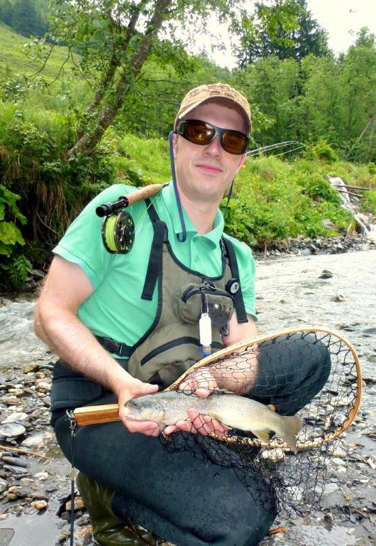 Armin mit einer großen Bachforellle, gefangen im Sulzbachtal am Fronleichnamstag!